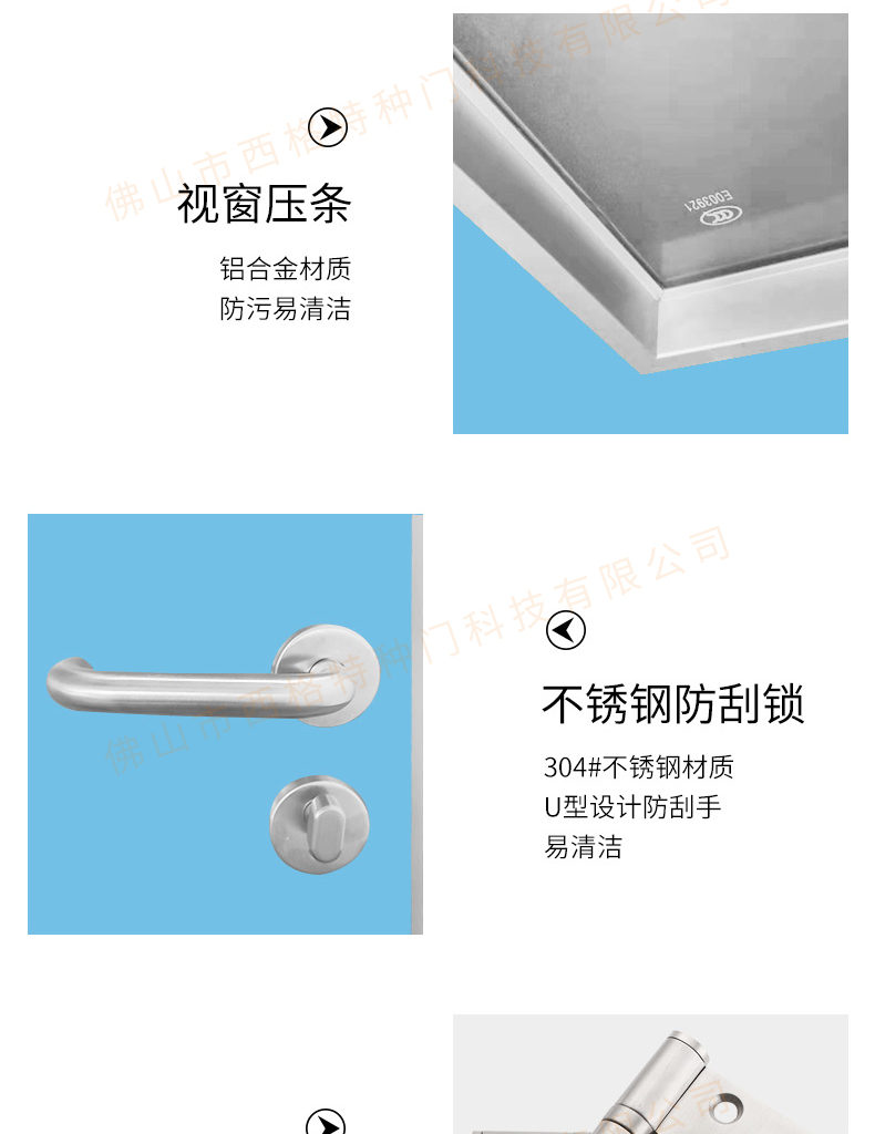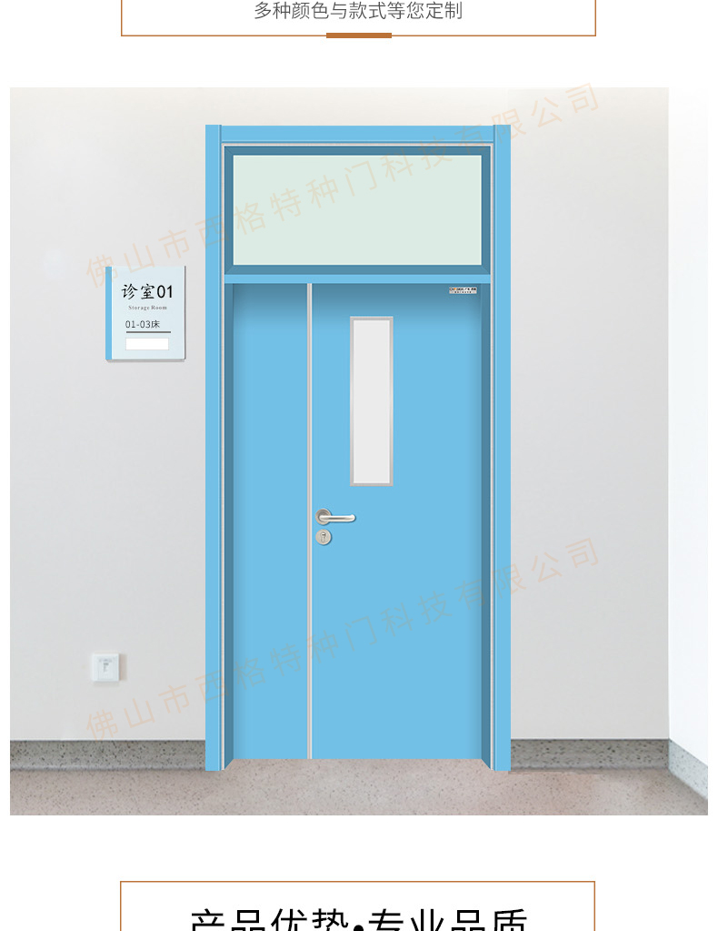 產品簡介:chnsige西格特種門,專業生產病房門,醫院病房門,醫院病房木門,病房木門,木質病房門,鋼質病房門,多鐘款式、顏色,尺寸可定制。